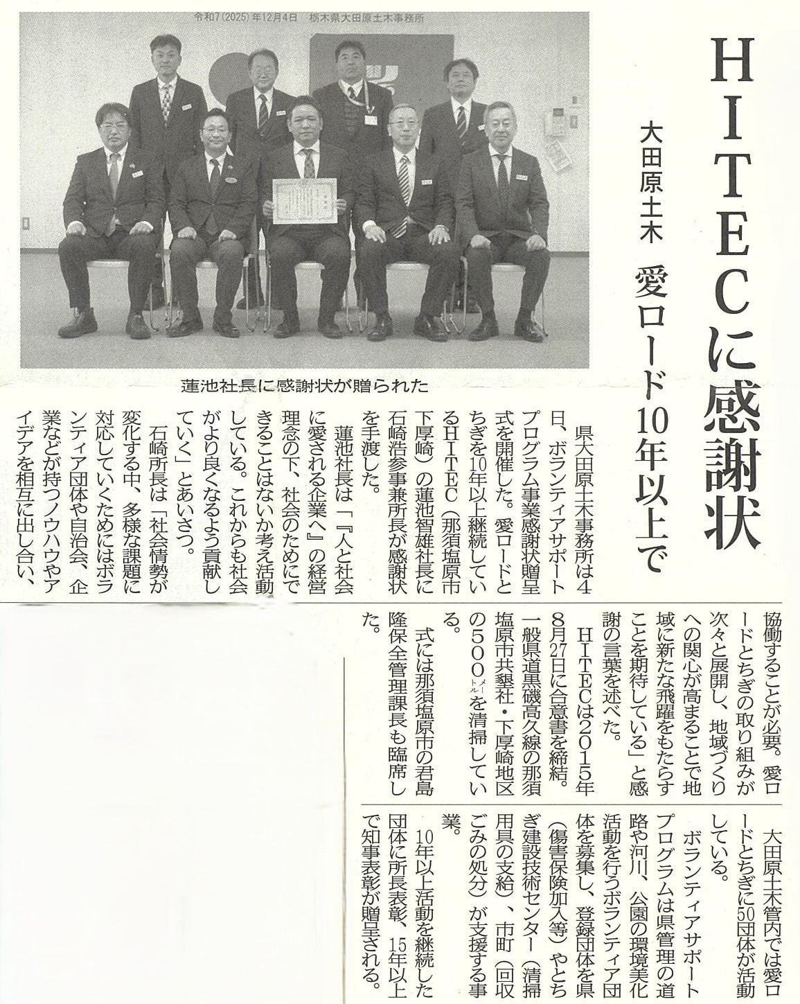 那須塩原市立三島中学校で行った出前授業の様子が2月10日(火)付の栃木建設新聞に掲載されました!